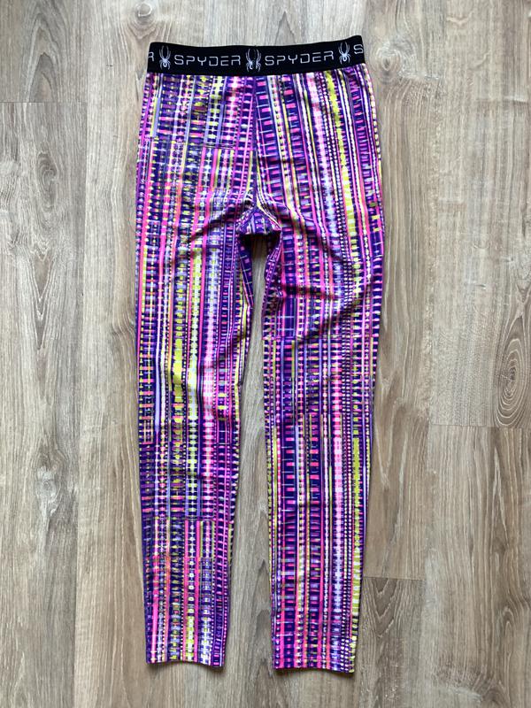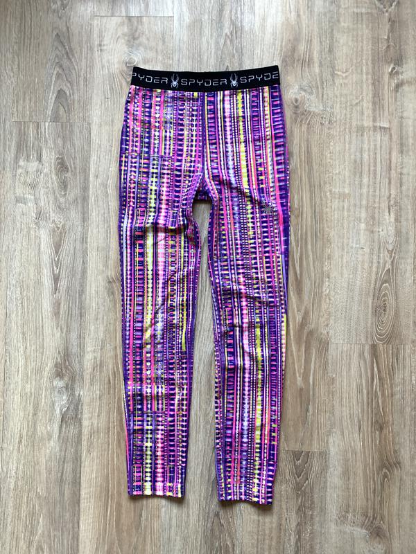 Оригинальные женские лосины от Spyder. На бирке размер детский, но в реале подойдут на полноценный женский размер S-M. Материал плотный и очень хорошо тянется. Подойдут на высокий рост, посадка высокая.