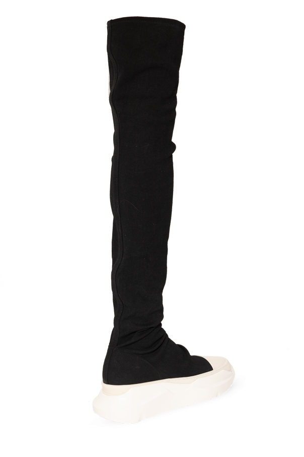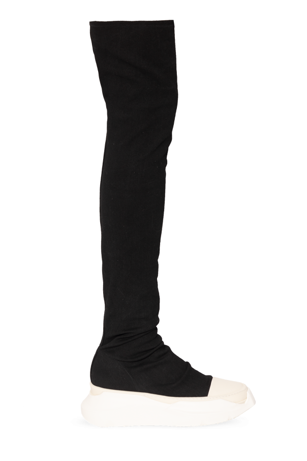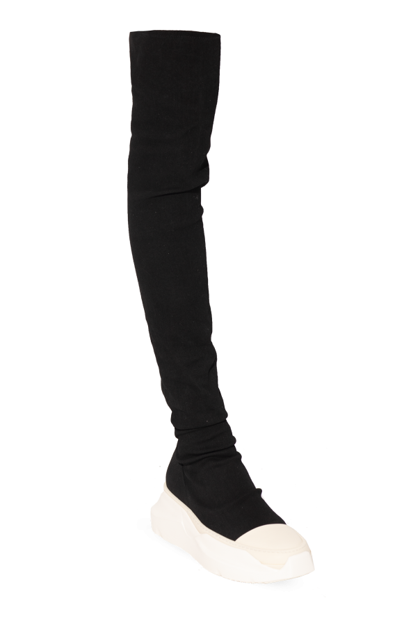 Black ‘Abstract Stockings’ sneakers with a denim stocking from Rick Owens DRKSHDW. Crafted from fabric, this pair sits on a white rubber sole with a geometric shape.