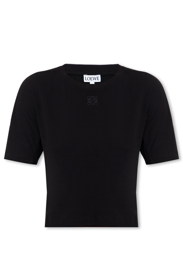 Black top from Loewe. Made of cotton, this style showcases an embroidered logo, short sleeves and ribbing on the round neck.