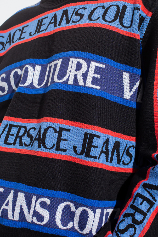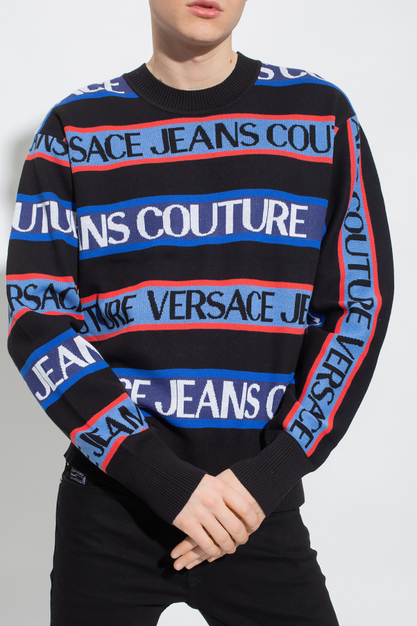 Multicoloured crewneck sweater from Versace Jeans Couture. Made of cotton, this style features an embroidered logo and ribbed trims on the bottom hem and cuffs.