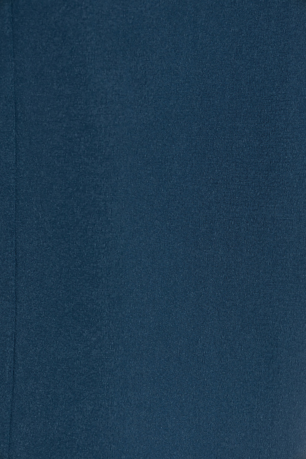 Navy blue pencil skirt from Tory Burch. Crafted from textured fabric, this style features a wrap silhouette with a side zipper and hook & eye closure.