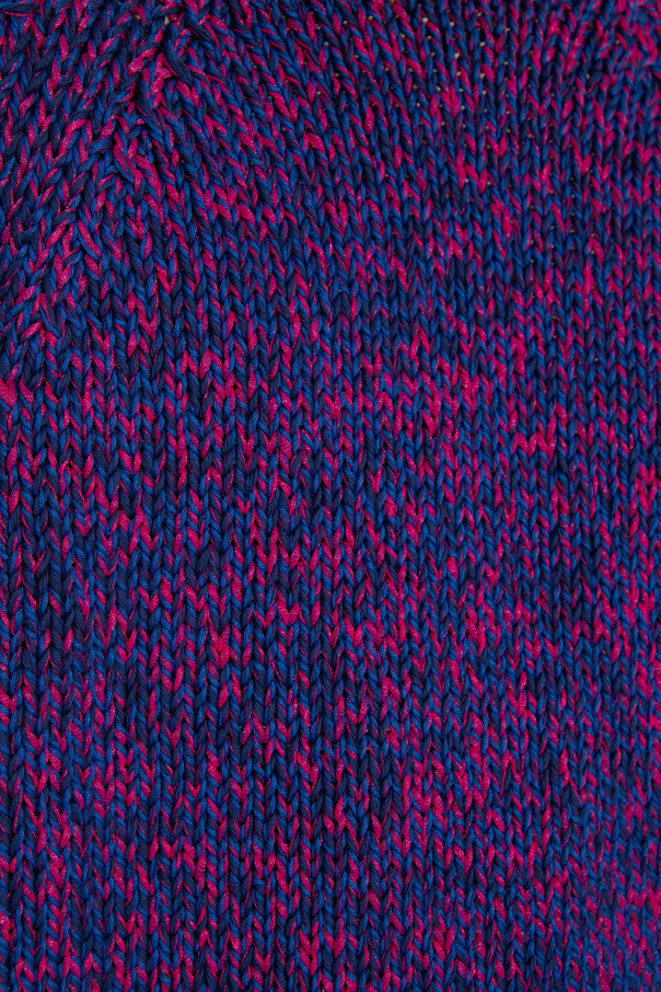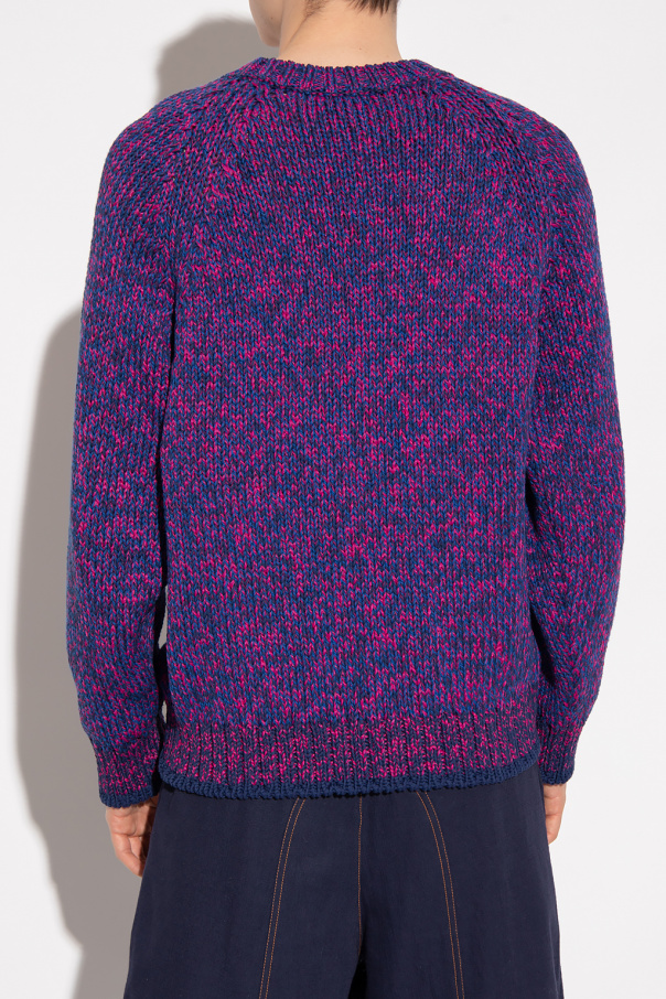 Dark pink and navy blue crewneck sweater from Kenzo. Crafted from cotton with a relaxed-fitting silhouette, this style features a cream ‘K-Tiger’ tag and a ribbed collar, bottom hem and cuffs.