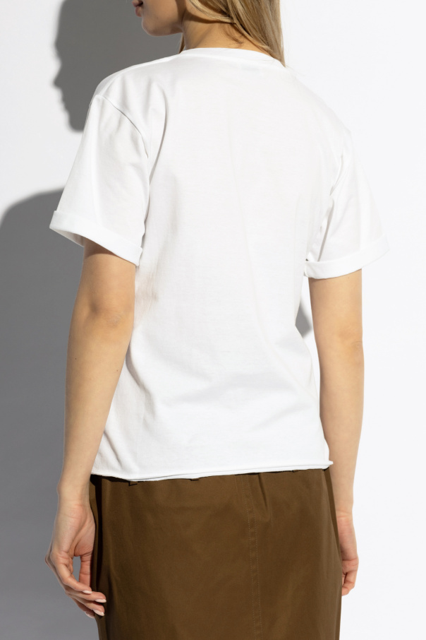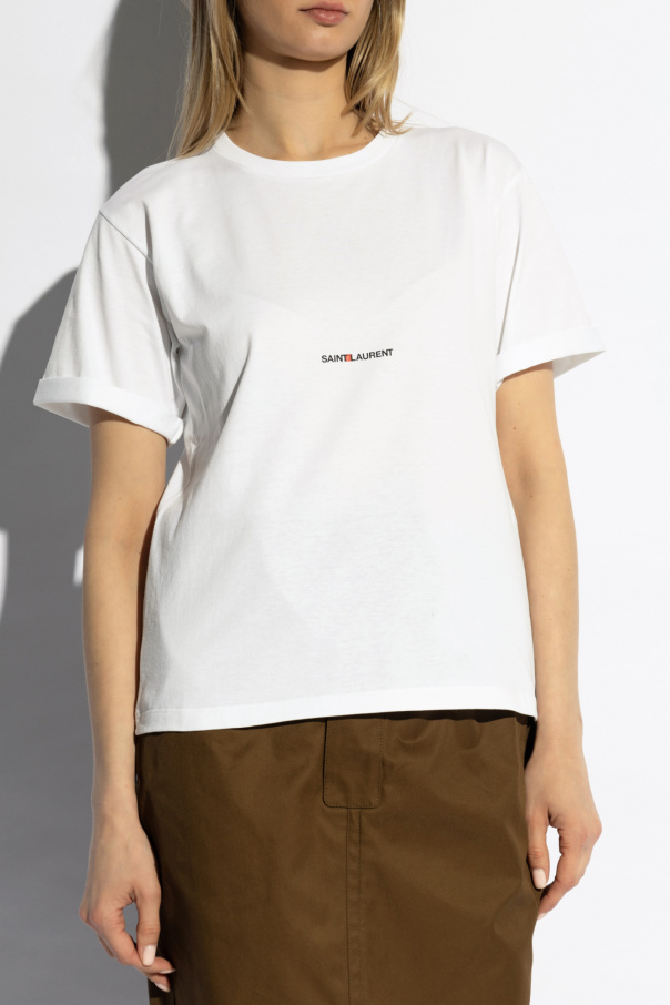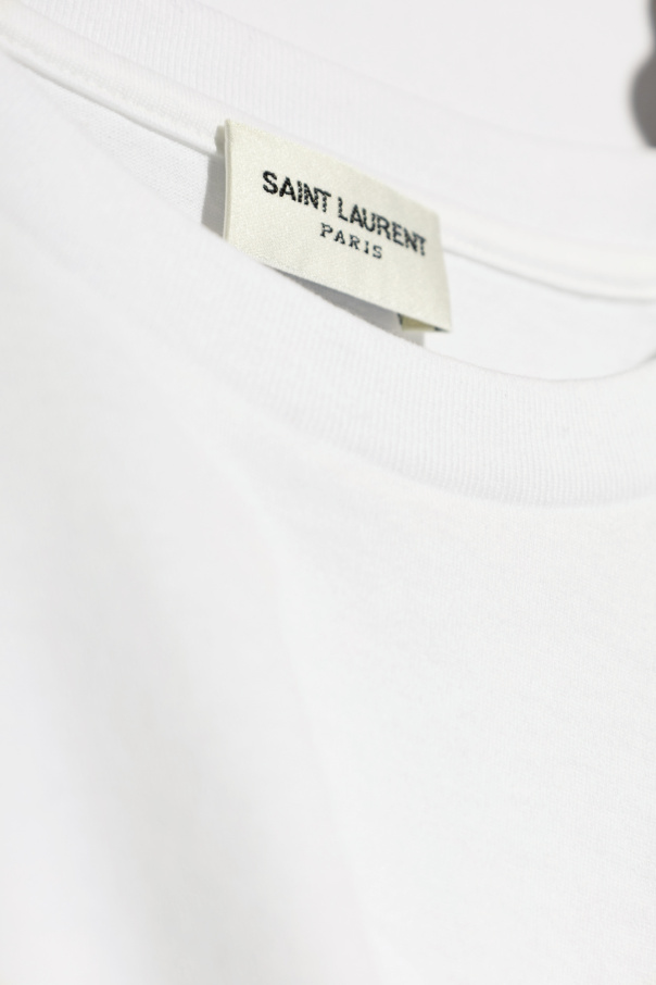 White cotton T-shirt with printed logo from Saint Laurent. Round neck. Short sleeves.