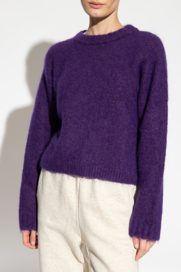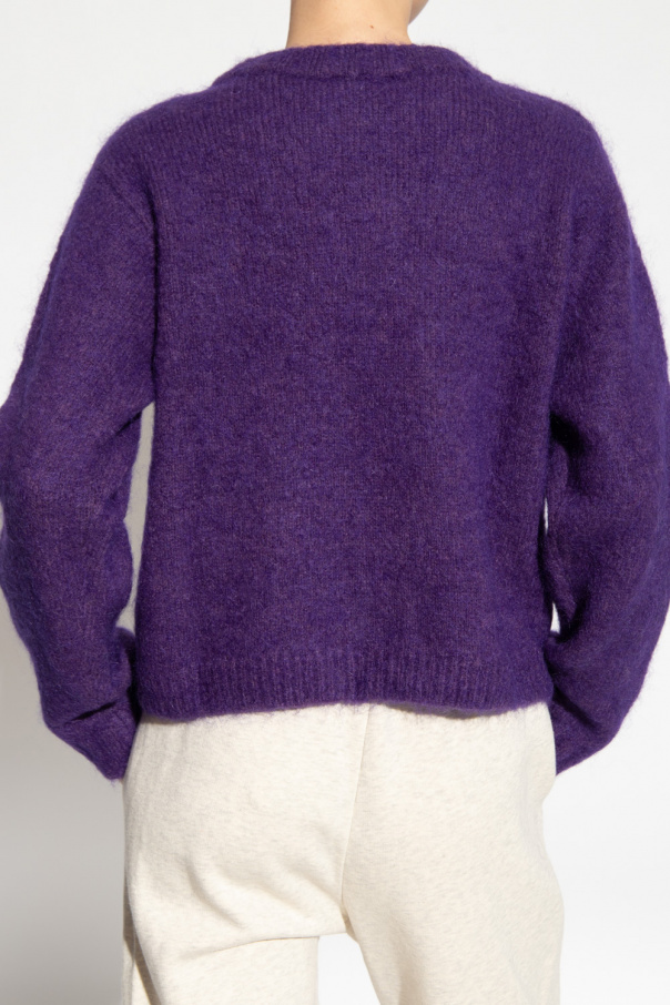 Purple loose-fitting sweater from American Vintage. Crafted from a mohair blend, this garment has a ribbed V-neck, hem and cuffs.