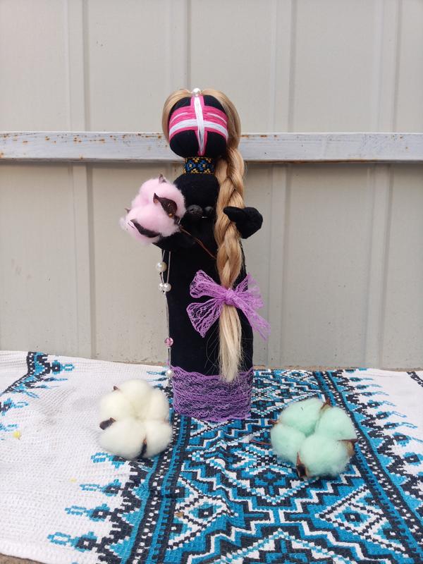 кукла мотанка,пустотелая (т.е. стоит самостоятельно без подставки) можно использовать как игрушку волос можно по желанию распустить,пояс с натуральными камнями,руки гибкие сейчас модно иметь мотанку) отличный подарок, как для женщины так и для мужчины за более детальной информацией убедитесь в приват