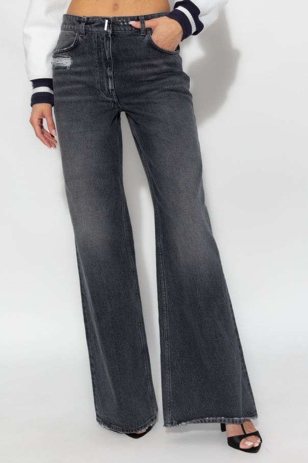 Grey jeans from Givenchy. Made of cotton with a vintage effect, this pair falls with wide legs and features a zip fly with a button and classic five pockets.