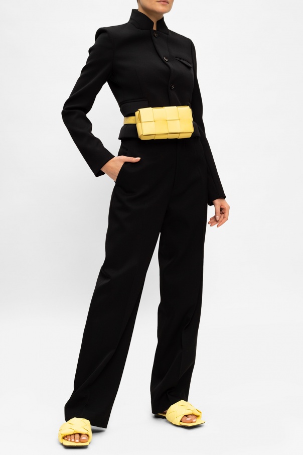 Yellow ‘BV Lido’ slides from Bottega Veneta. Designed from lamb leather with the label\'s iconic \'Intrecciato\' weave, this pair has an embossed logo and beige leather sole injected with rubber insert to ensure comfort and stability.