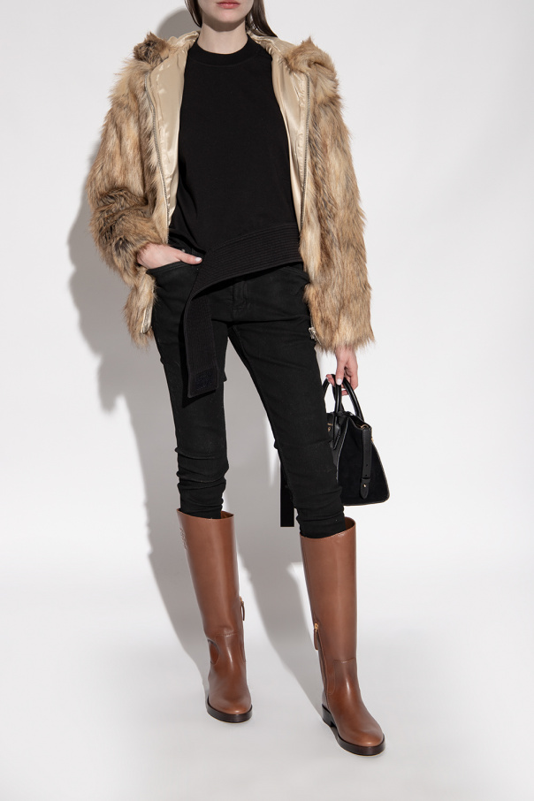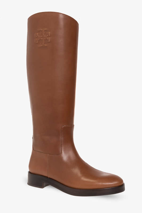 Brown boots from Tory Burch. Crafted from calf leather, this model sits on a dark brown leather sole with a rubber trim and features a side zipper and tactile branding.