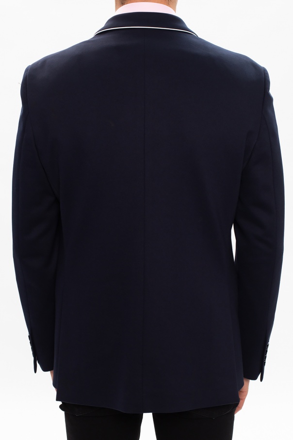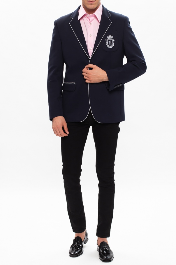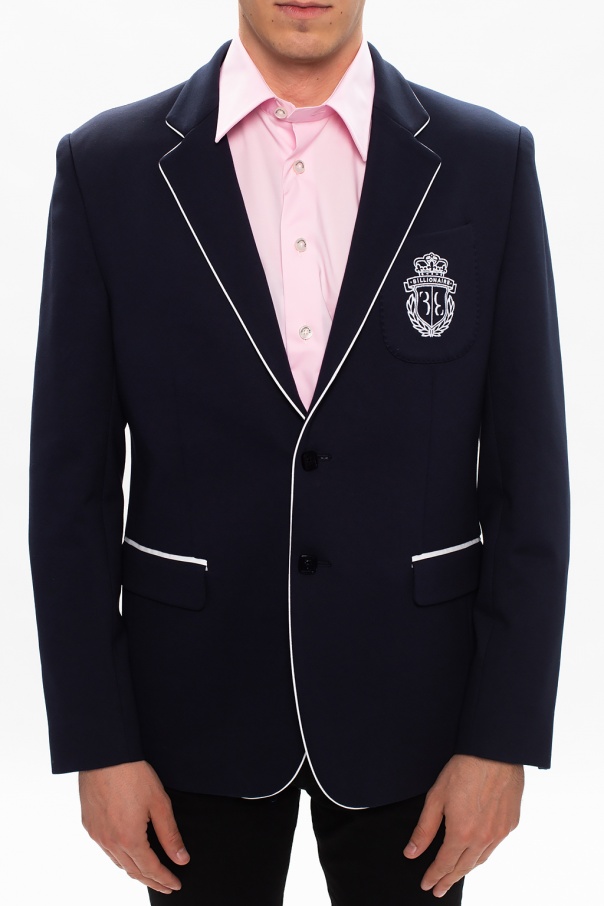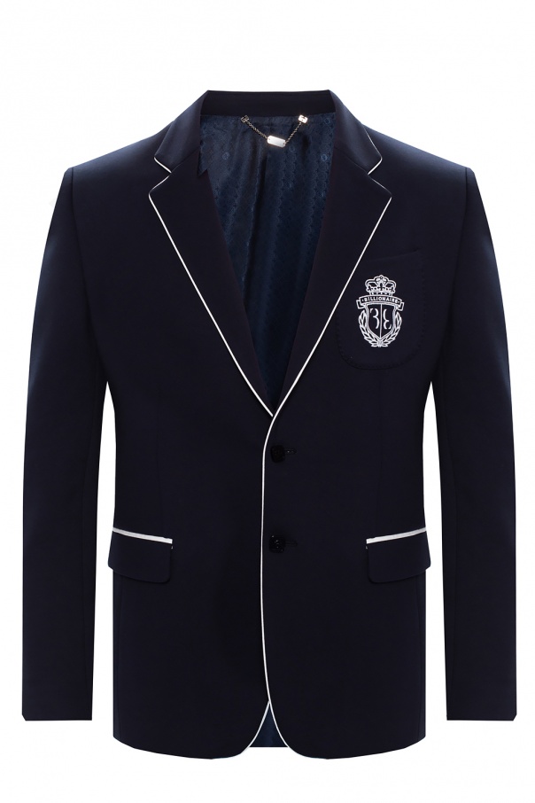 Navy and white blazer with notch lapels from Billionaire. Fastened with buttons, this item features a logo embroidery, two front flap pockets and a single rear vent.