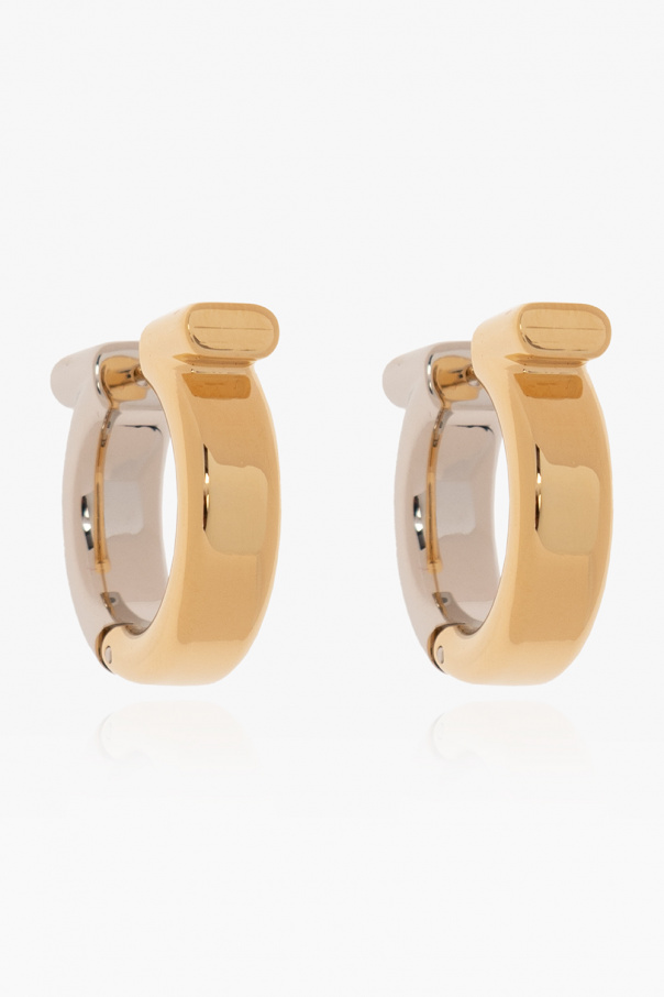 Gold-tone and silver-tone earrings in the shape of a logo from Salvatore Ferragamo. Made of brass.