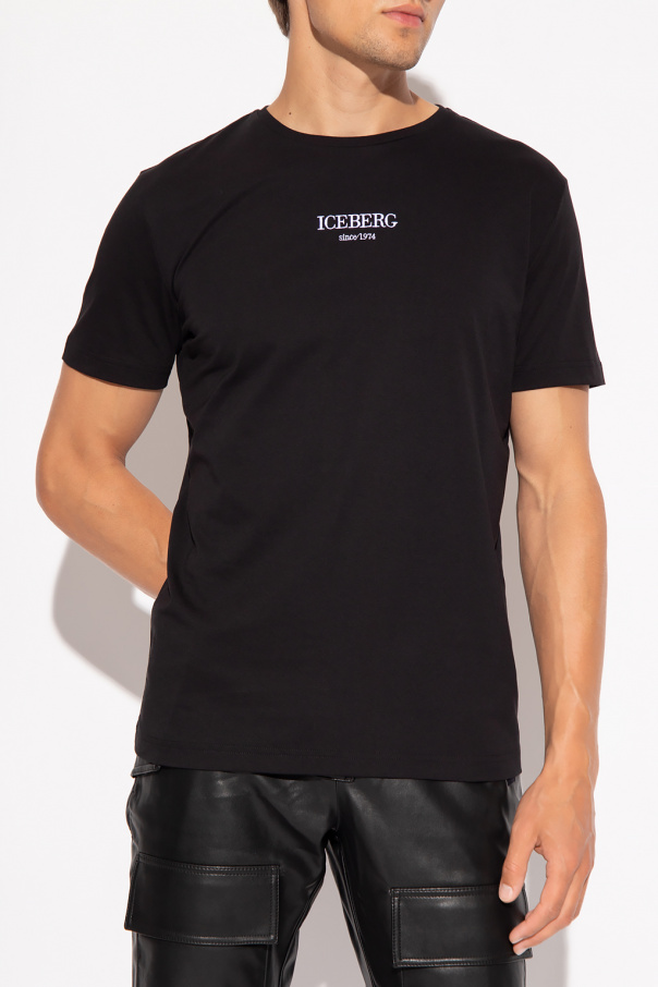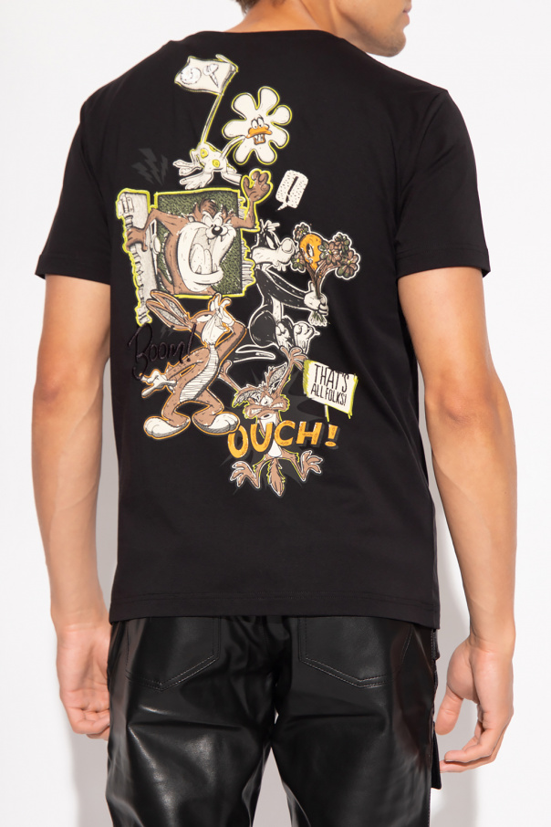 Black crewneck T-shirt from Iceberg. Made from cotton, this style has short sleeves, an elasticated collar and a graphic print featuring Looney Tunes characters at the back.