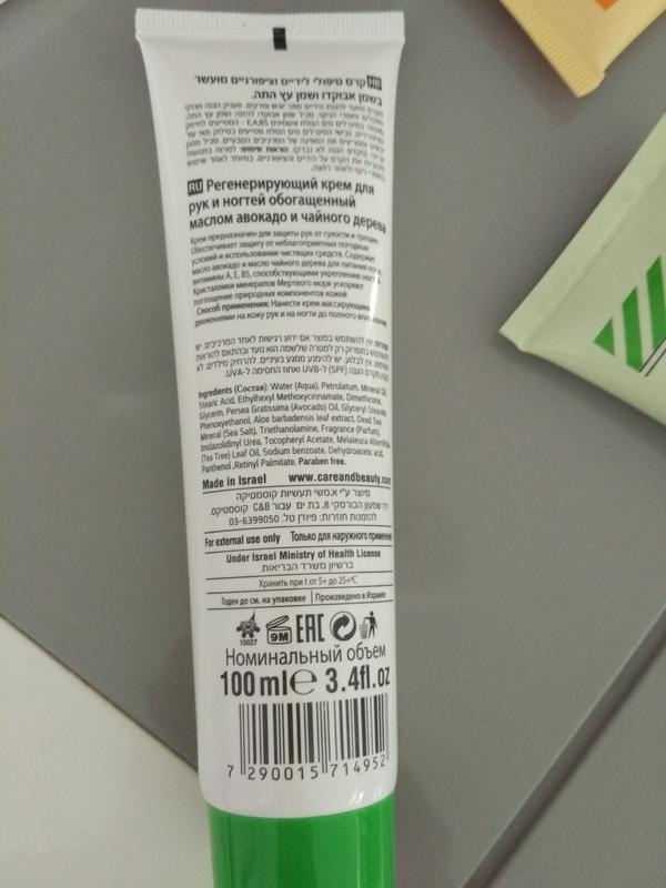 Регенерирующий крем для рук и ногтей обогащенный маслами авокадо и чайного дерева.