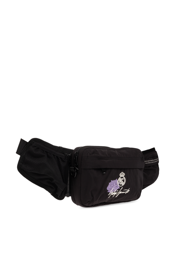 Introducing the Y3 Yohji Yamamoto x Real Madrid Waist Bag, a seamless blend of haute couture and sports elegance. Crafted from 100% PET-REC, this accessory stands at the zenith of sustainable fashion without compromising on durability. Its rectangular shape, with softly rounded corners, serves as a canvas for the exquisite decorative embroidery and print that signifies the collaboration between the iconic designer Yohji Yamamoto and the legendary Real Madrid football club. The bag\'s functionality is enhanced by multiple zippered compartments, ensuring your essentials are organized and secure. The interior, although not fully visible in the images, hints at additional organizational pockets, adding to its utility. The adjustable strap with a sturdy plastic snap buckle allows for versatile wearability, adapting seamlessly to your unique style and needs. A thoughtful addition is the carabiner clip, perfect for attaching keys or other small items for quick access. Adorned with the logo, the club\'s crest, and a floral motif in white and violet, this waist bag is more than an accessory; it\'s a statement of refined taste and allegiance. Whether for game day or everyday use, it encapsulates the spirit of both the designer and the club in a singular, fashionable silhouette. Why Purchase This Product? Sustainable Material: Made from 100% PET-REC, combining eco-consciousness with high durability. Exclusive Design: Features unique collaboration details, including logos and a floral motif, setting it apart from ordinary accessories. Functional and Secure: Multiple zippered compartments and a carabiner clip for efficient organization and safekeeping of personal items. Versatile Wearability: Adjustable strap and detachable shoulder strap offer multiple ways to wear, enhancing its utility and style.