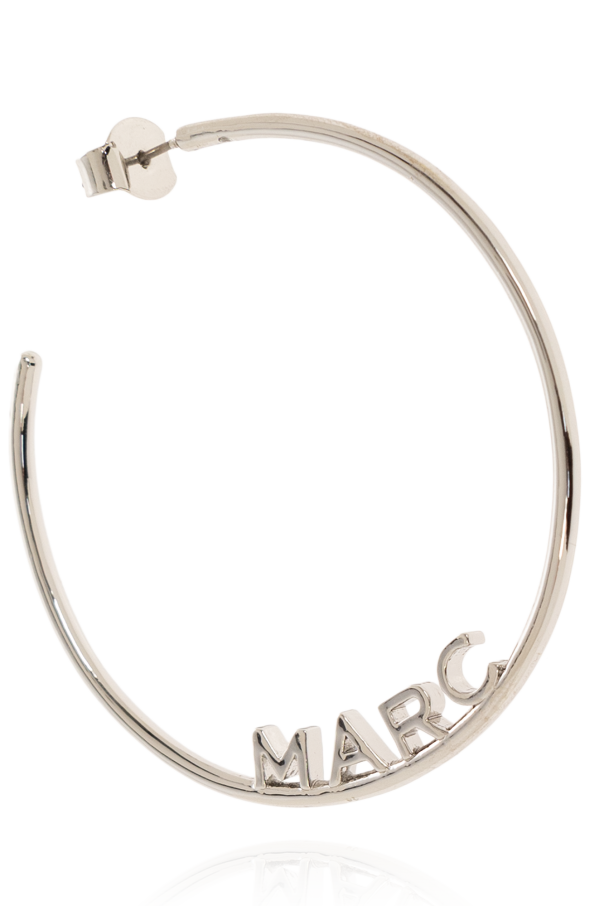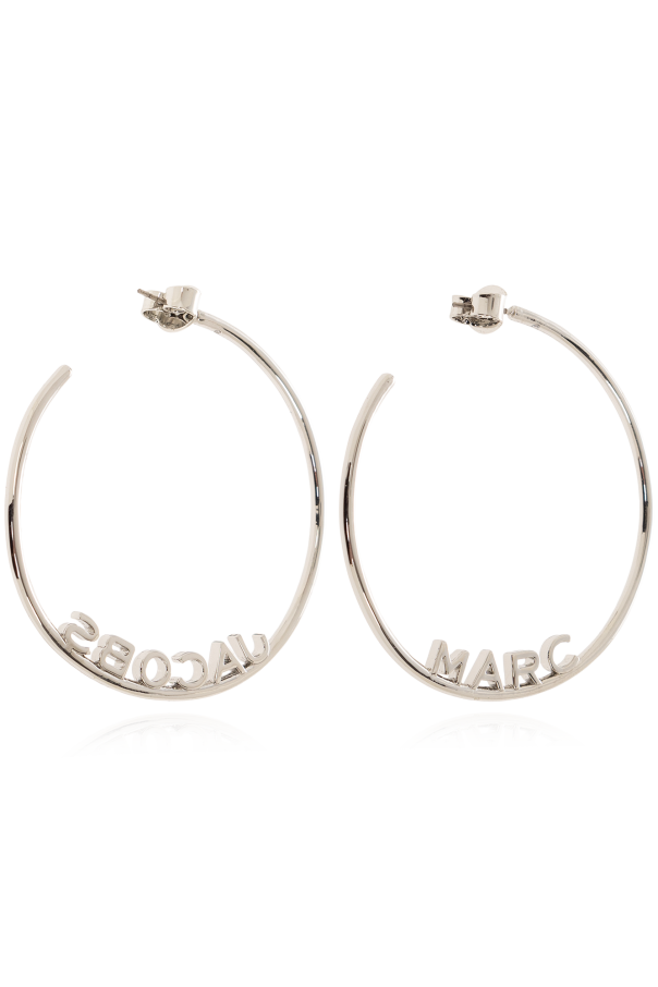 Silver-tone hoop earrings from Marc Jacobs. Made of brass, they secure with push-back closures and showcase the brand\'s logo and cubic zirconia.