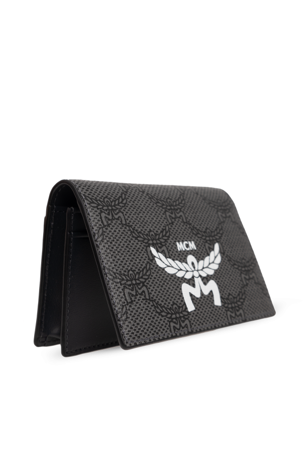 Grey ‘Himmel’ card holder from MCM. Made of leather with a dark grey monogram and white logo print, this item features a card lot at the back as well as one compartment and one card slot inside.