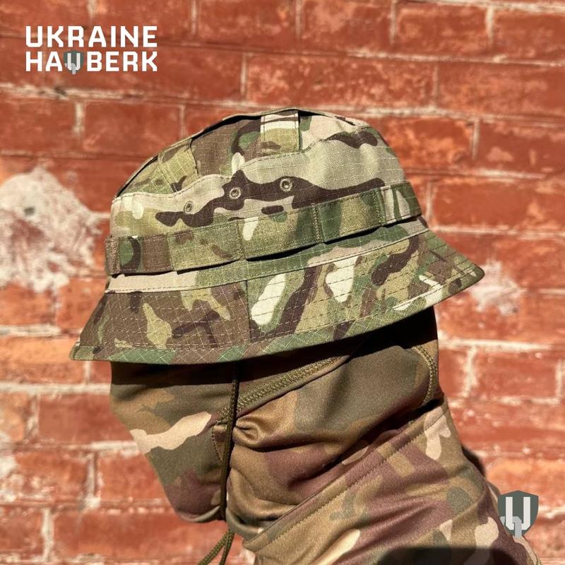 Регулируемый ремешок для подбородка.Материал: рипстоп (50% хлопок, 50% полиэстер).