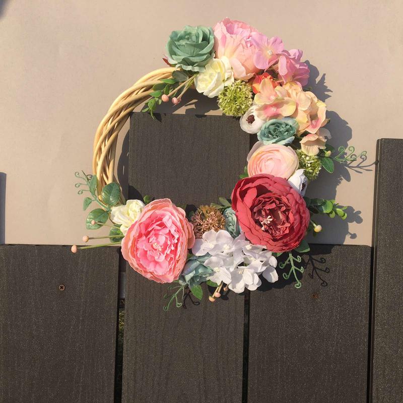 Декоративний венок на двери или стену с натуральной лози и фабричних цветов и зелени. Диаметр 30 см.