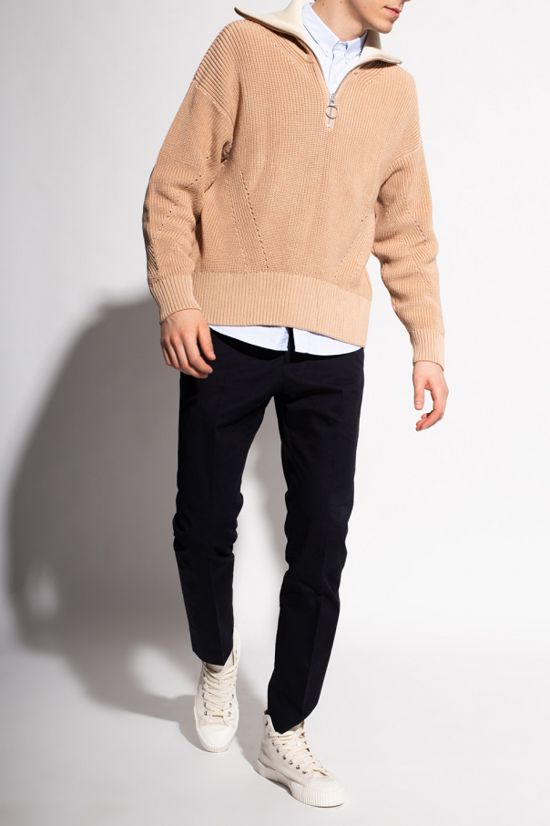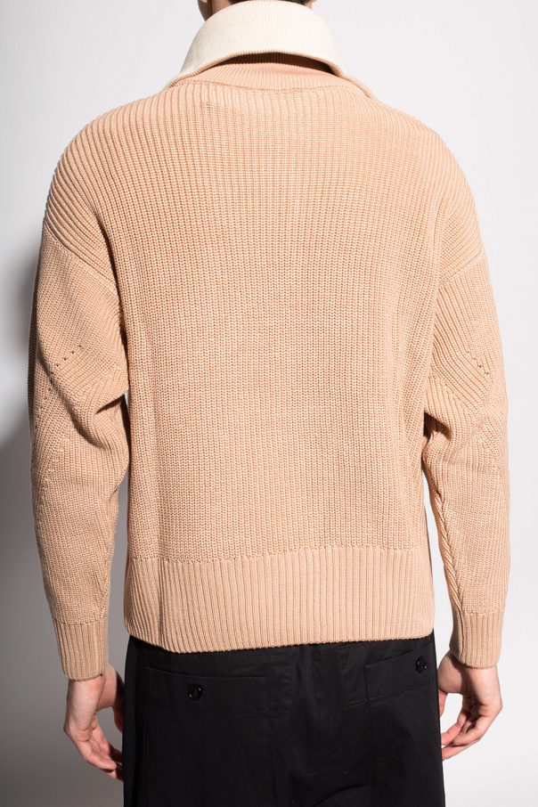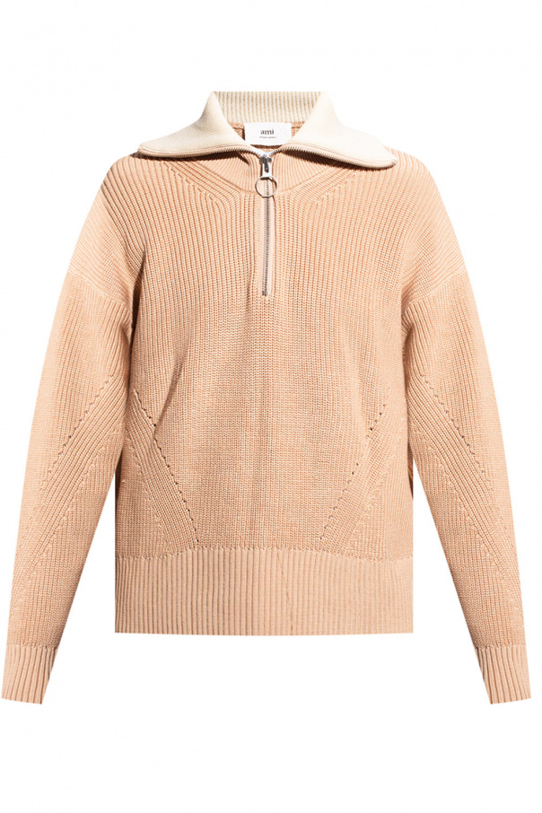 Beige sweater from Ami Alexandre Mattiussi. Knitted from cotton, this design features a collar, zip fastening and long sleeves.