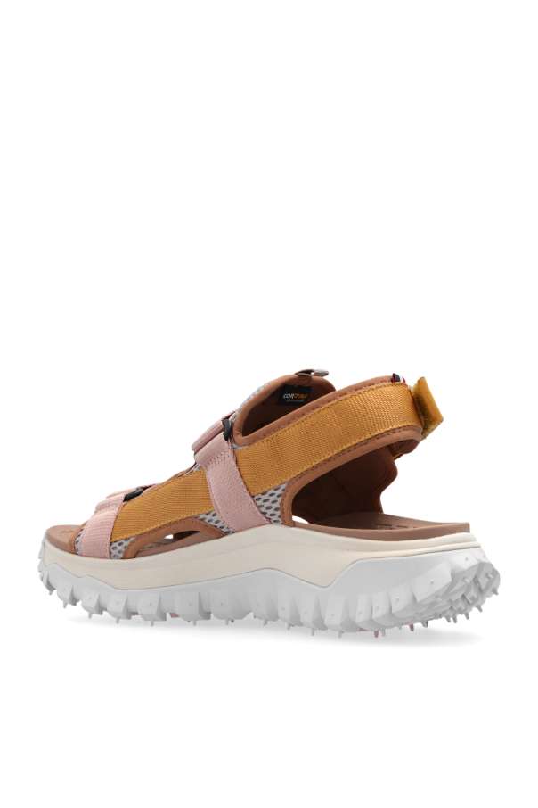Introducing the ‘Trailgrip’ Sandals from the esteemed collection of Moncler, a confluence of luxury and outdoor agility. These sandals, adorned with a vibrant palette of pink, beige, and brown, encapsulate the essence of summer adventure with an air of sophistication. The open design, featuring multiple straps, offers unparalleled support and ventilation, ensuring comfort with every step. Crafted from a harmonious blend of textile and leather-like materials, each strap showcases a variety of textures and finishes, culminating in a piece that is as visually appealing as it is functional. The adjustable Velcro straps provide a customizable fit, tailoring to the unique contours of your feet. Notably, the thick sole, adorned with a distinctive tread and contrasting finish, speaks volumes of the ‘Trailgrip’ Sandals’ durability and sporty elegance. A subtle designer logo on one of the straps and the brand emblem on the insole signify its prestigious lineage, reinforcing its status as a must-have accessory for the discerning fashion enthusiast. Why Purchase the ‘Trailgrip’ Sandals? Exquisite Design: A multi-color masterpiece that blends functionality with high fashion. High-Quality Materials: Expertly constructed with premium textile and synthetic leather for lasting wear. Versatile Functionality: Equipped with a robust sole for outdoor adventures and uneven terrains. Signature Moncler Elegance: Embellished with the iconic logo, these sandals are a testament to luxury and exclusivity.