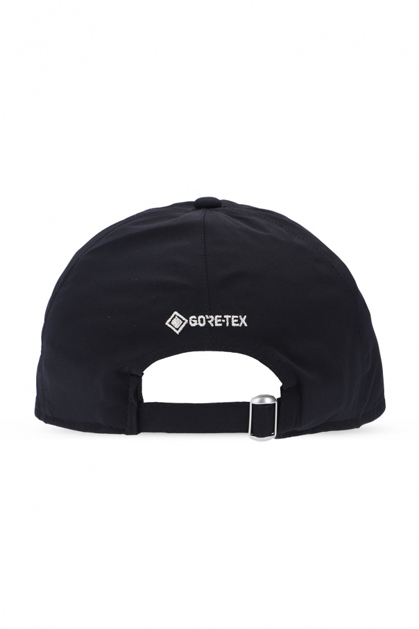 Black baseball cap from Yohji Yamamoto x New Era. Crafted from fabric including water-resistant Gore-Tex fibres, this item comes with a branded bag and showcases an embroidered silver-tone and a back adjuster.