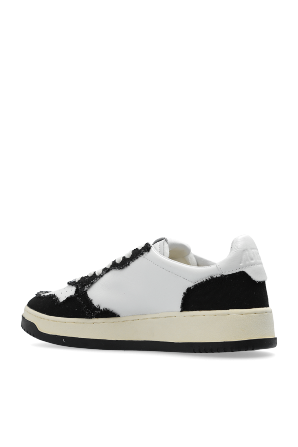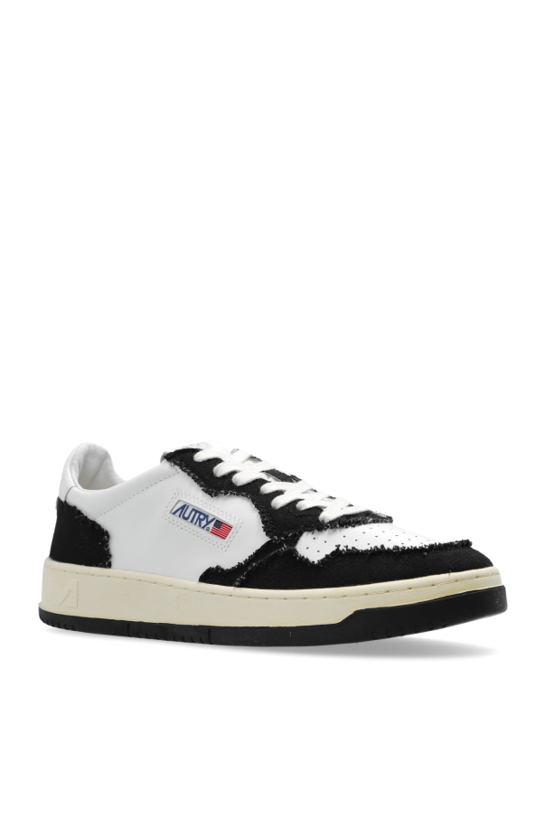 White and black ‘Medalist’ sneakers from Autry. Made from leather and fabric, this lace-up model sits on a black and cream rubber sole and showcases the brand\'s logo, raw edges and perforations on the front.