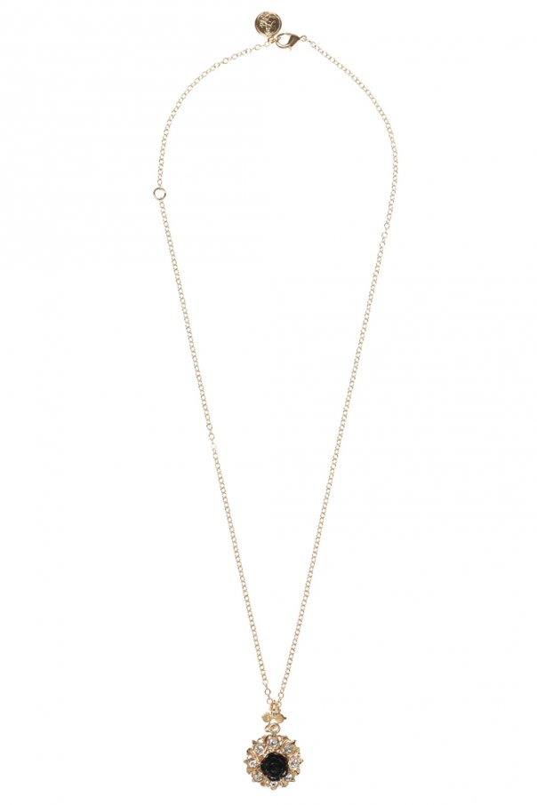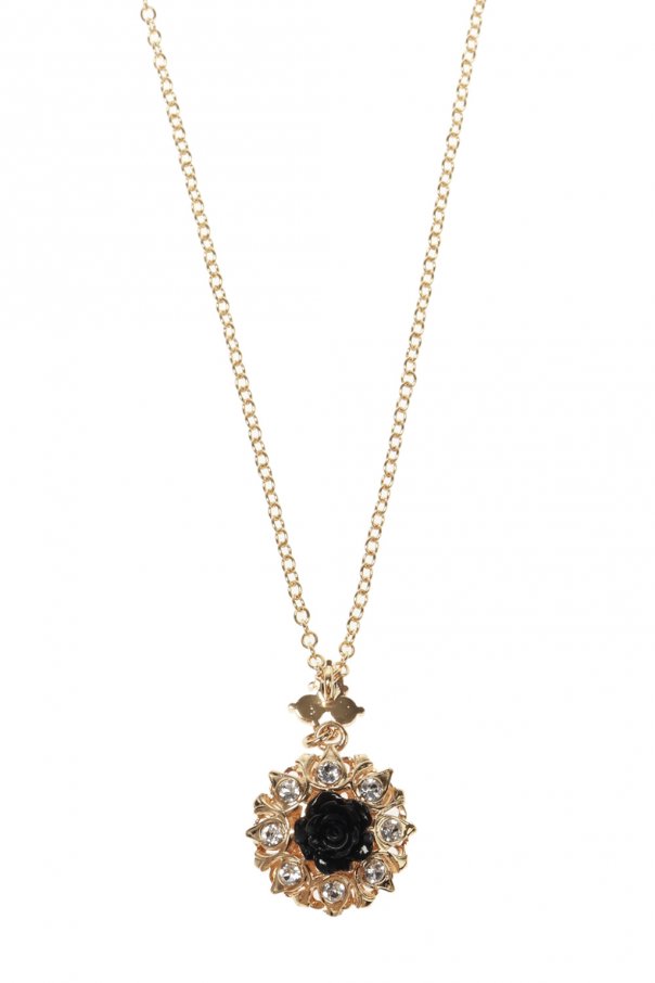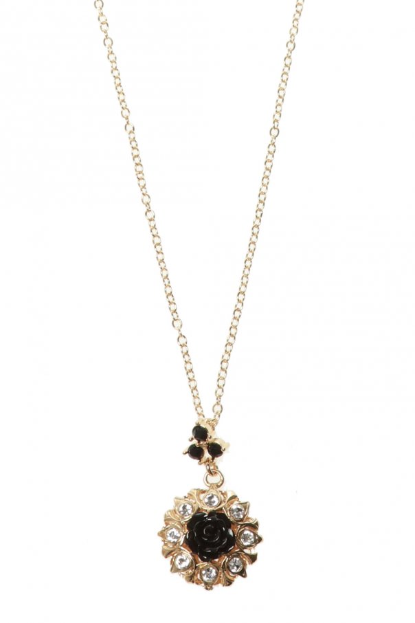 Brass necklace on chain from Dolce & Gabbana. Fastened via lobster clasp. Detailed with pendant enriched by black and white gemstones.