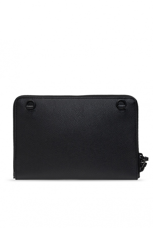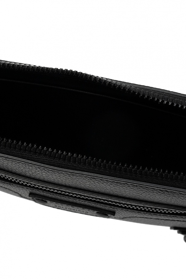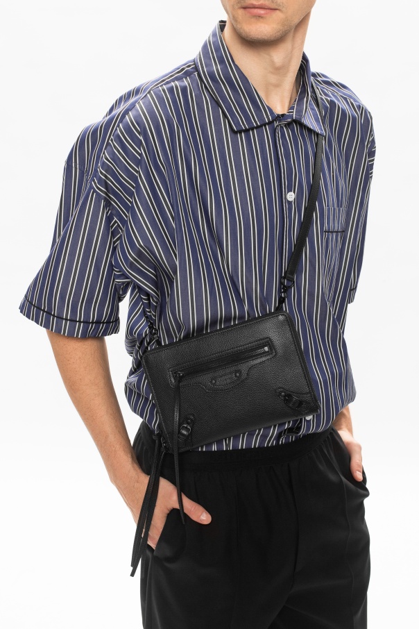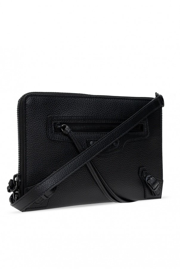 Black shoulder bag from Balenciaga. Made of textured calf leather, this design fastens with a two-way zip and an embossed logo. It is complete with a front zip pocket, detachable and adjustable shoulder strap and one internal compartment with one slip pocket.