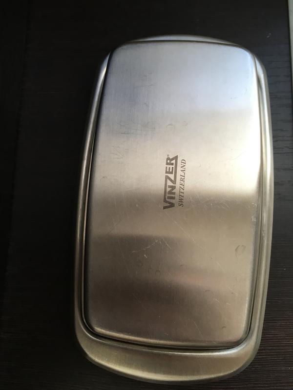 Масленка Vinzer . Изготовлена из высококачественной нержавеющей стали FERRINOX® 18/10, разработанной швейцарскими специалистами и запатентованной компанией Vinzer. Укомплектована удобной крышкой. Обладает высокой функциональностью и элегантным дизайном.