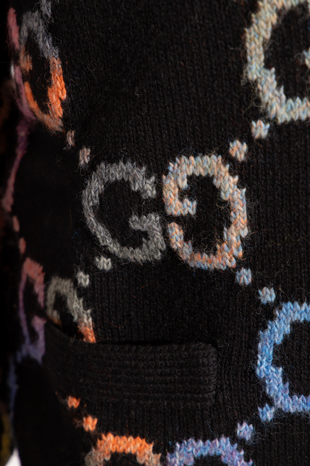 Black cardigan from Gucci. Made from wool, this style features an embroidered colourful GG pattern, a V-neckline, button fastenings, long sleeves and two slip pockets.