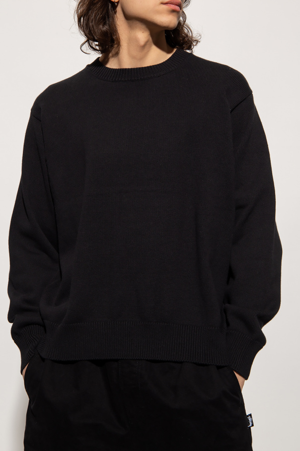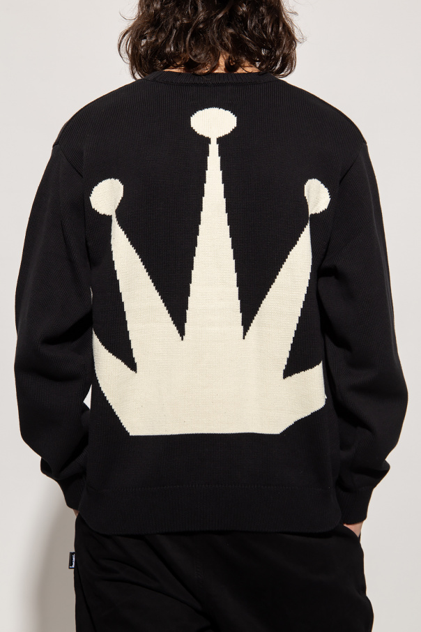 Black sweater from Stussy. Made of cotton, this garment features a white Crown pattern embroidered at the back and ribbed trims at the round neck, hem and cuffs.