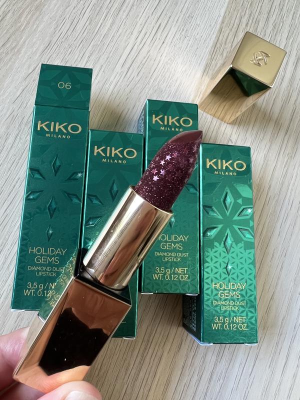 Kiko Milano – это любовь! Holiday Gems Diamond Dust Lipstick от Holiday Gems Diamond Dust Lipstick – твоя новая любимая помада с бриллиантовой пылью! Роскошный металлический финиш – и ты в центре внимания каждую секунду. Длительная фиксация и насыщенный цвет. Восторг от сияния и комплиментов. И невероятное ощущение комфорта – нежная, легкая, кремовая текстура помады ложится безупречным тонким слоем. В твоем распоряжении шесть совершенно потрясающих оттенков Holiday Gems!