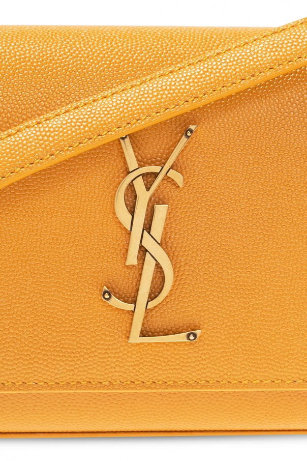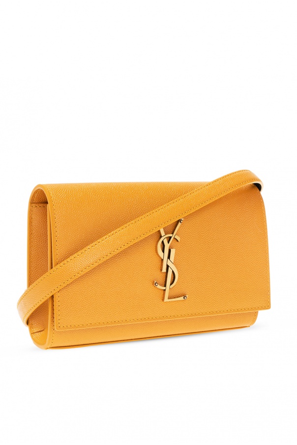 Orange ‘Kate’ belt bag from Saint Laurent. Crafted from grainy calf leather, this design fastens via a snap and it showcases gold-tone YSL metal initials, a detachable strap and an internal compartment with one zip pocket, one slip pocket and four card slots.