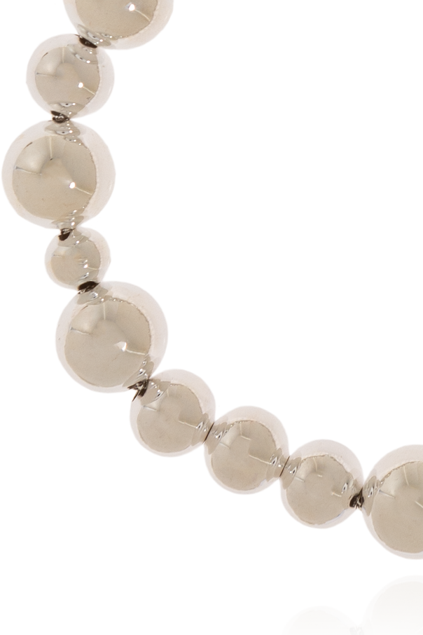 Introducing the ‘The Elly’ Bracelet from the exclusive Lie Studio collection, an epitome of elegance and minimalist design. This exquisite piece features a series of spherical elements in varying sizes, creating a harmonious and classic pattern. Crafted from high-quality brass with a stunning silver finish, the bracelet exudes a luxurious appeal. Each bead has a smooth, polished surface that enhances its sophisticated character. The bracelet is secured with a lobster clasp, adorned with a pendant inscribed with \"the brand,\" signifying its premium heritage. The designer\'s logo is subtly engraved on the pendant, reinforcing its status as a luxury item. The meticulous craftsmanship of the beads speaks volumes about the superior quality of this piece. Why Choose This Product? Elegant Design: Harmonious spherical elements create a timeless look. High-Quality Material: Made from premium brass with a luxurious silver finish. Secure Clasp: Features a lobster clasp with an inscribed pendant. Designer Logo: Subtle branding that underscores its exclusivity. Versatile Accessory: Perfect for both everyday wear and formal occasions.