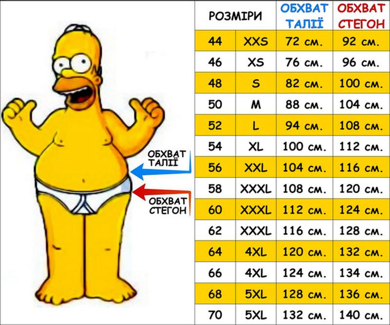 Вільні НІДЕ НЕ ТИСНУТЬ!!! Пошиття за вашими розмірами (для розмірів більше 54 ціну уточнюйте). Чоловічі та жіночі. Гульфік на чоловічих декоративний (не розстібається). Зверніть, будь ласка, увагу, що розміри у таблиці це виміри по тілу. Для того, щоб виріб прослужив довше, при обслуговуванні виробу, будь ласка, дотримуйтись вказівок щодо експлуатації, які знаходяться у фото товару.