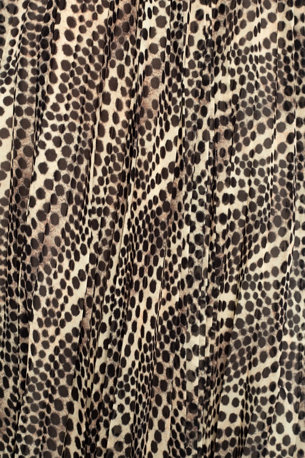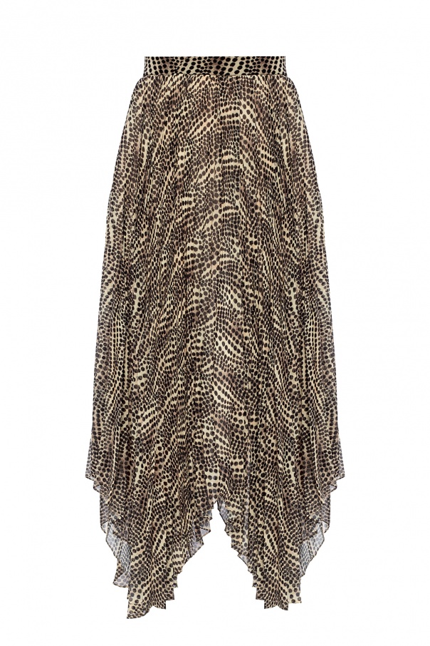 Beige skirt from Isabel Marant. Fastened with hooks, this design comes decorated with gathers and a black polka dot pattern.