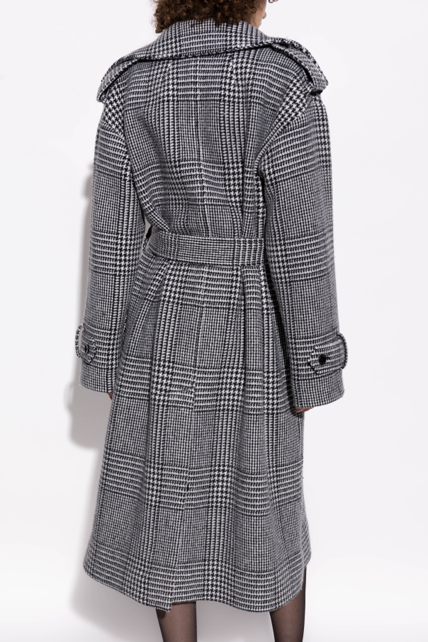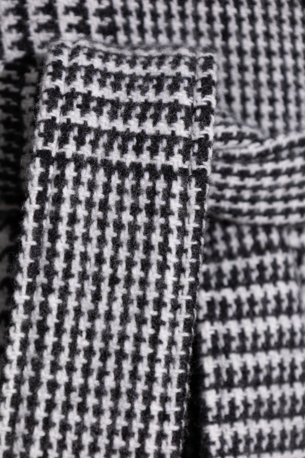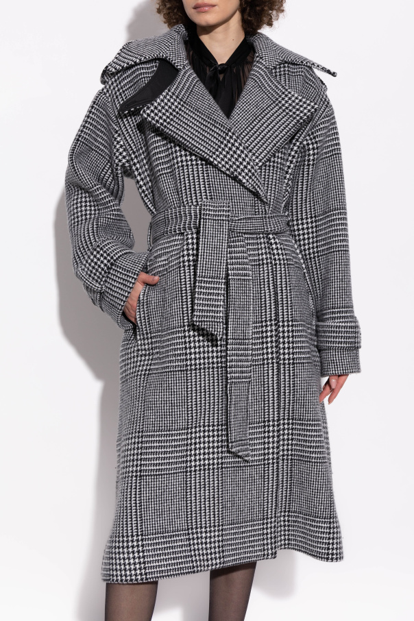Introducing the Dolce & Gabbana Plaid Coat, a masterpiece from the exclusive collection of this renowned fashion house. This short women\'s coat, adorned with a timeless black-and-white plaid pattern, epitomizes sophistication and elegance. The coat features a classic silhouette with broad lapels and a collar, complemented by long sleeves finished with buttoned cuffs. A belt at the waist allows for an adjustable fit, accentuating the wearer\'s figure. Crafted from a premium blend of wool, polyamide, and polyester, the material is both thick and luxurious, making it perfect for cooler days. The coat\'s design includes double-breasted button closures and deep pockets on either side for added practicality. Distinctive details such as the central back seam and the permanently attached belt at the back ensure a seamless and polished look. While the designer logo is subtly integrated, the exceptional quality and style unmistakably signify a Dolce & Gabbana creation. Why Choose This Product? Timeless Elegance: Classic black-and-white plaid pattern. Superior Craftsmanship: Made from a high-quality blend of materials. Functional Design: Double-breasted closure, deep pockets, and adjustable belt. Iconic Brand: Authentic piece from the esteemed Dolce & Gabbana.