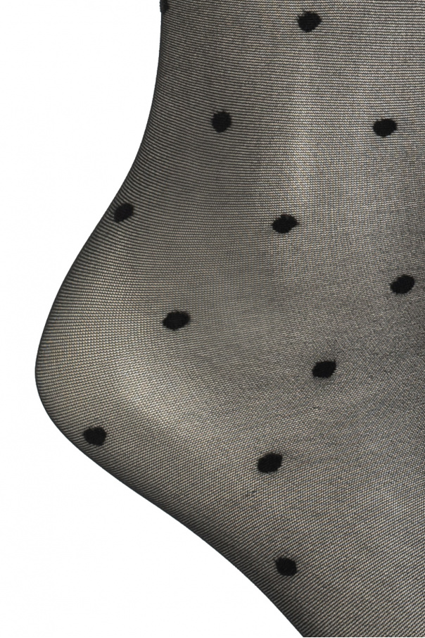 Black tights from Saint Laurent. Made from a stretch knit, they showcase all-over polka dots.