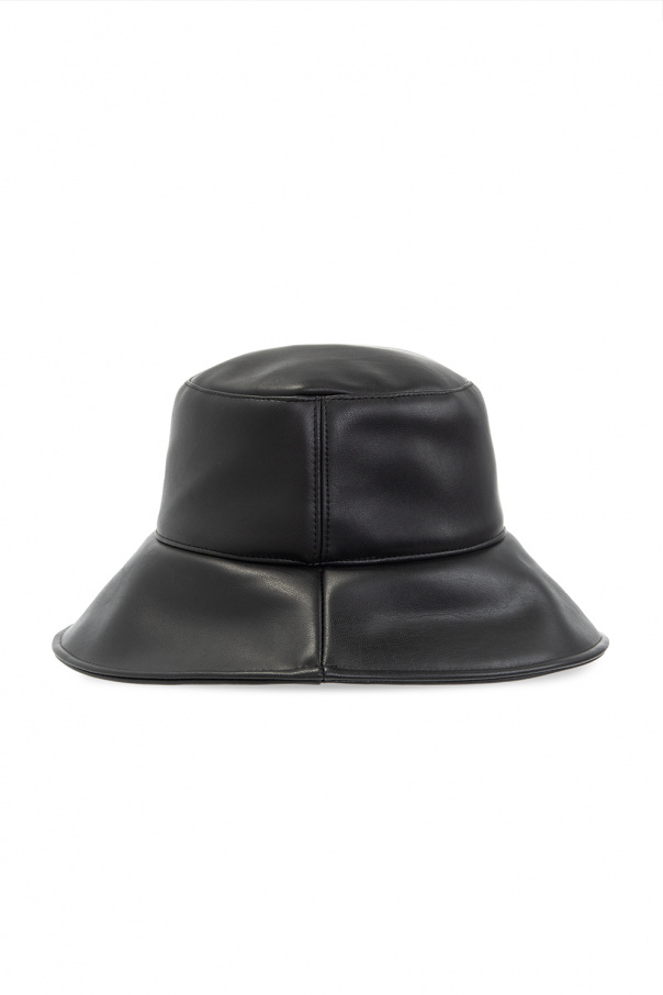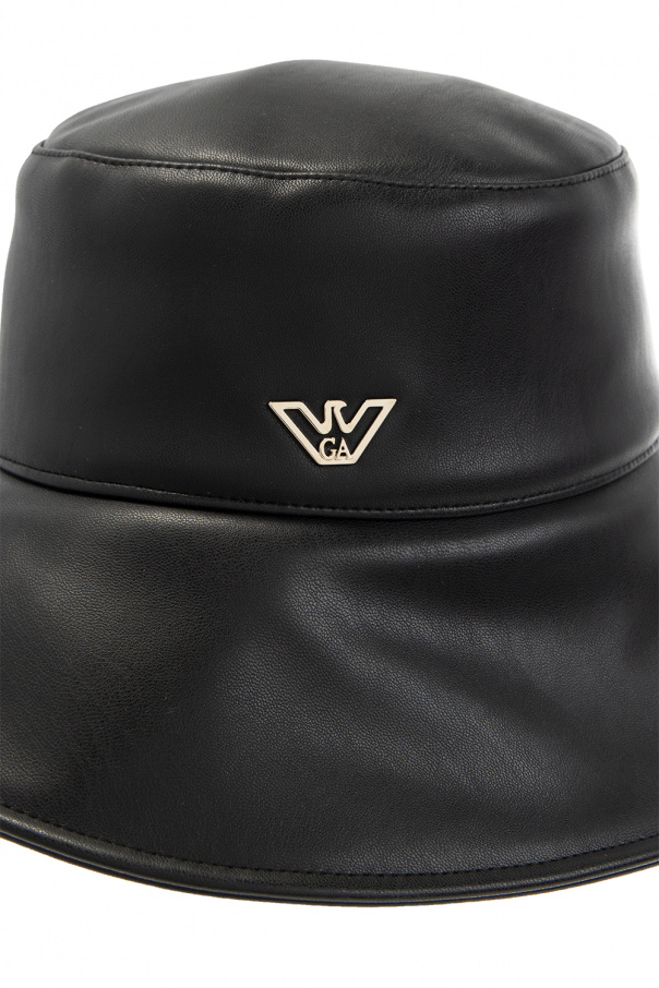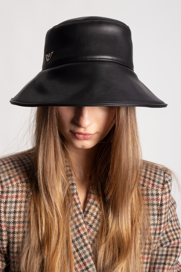 Black hat from Emporio Armani. Crafted from faux-Leather, this item showcases a silver-tone metal logo plaque on the front.