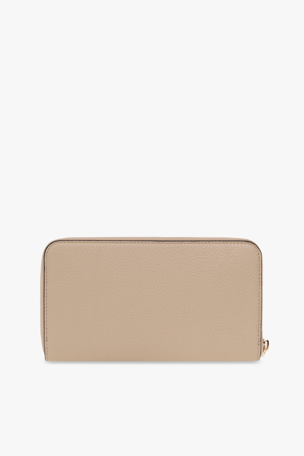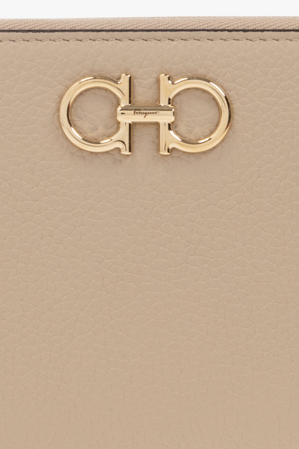 Beige wallet from FERRAGAMO. Crafted from calf leather, this design features a zip fastening, a gold-tone metal logo plaque and two bill compartments, one zip coin pocket, two slip pockets and eight card slots inside.
