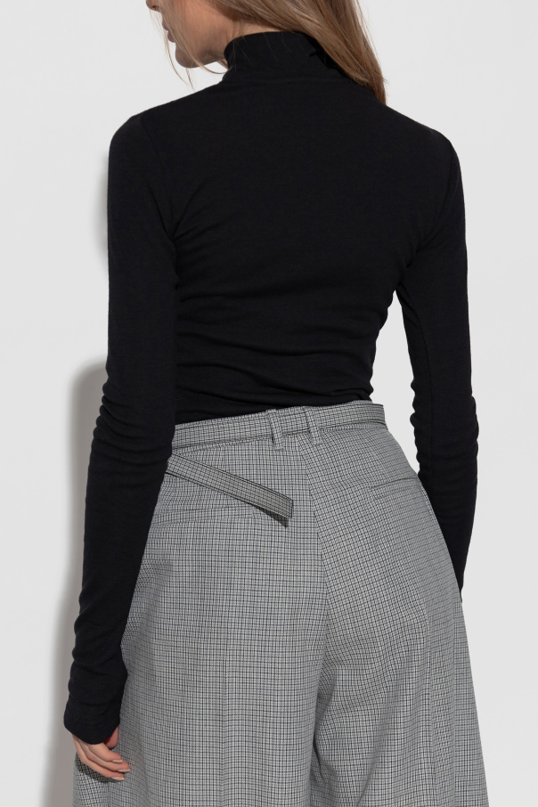 Introducing the Double Sweater by JIL SANDER+, an epitome of timeless elegance and versatility. This black masterpiece features a fitted silhouette with long sleeves and a high turtleneck, crafted for those who appreciate both style and comfort. Made from luxurious 100% wool, this sweater promises both warmth and a sublime touch against the skin. The deep black hue imparts a universal appeal, making it a quintessential piece in any wardrobe. Styled effortlessly with wide-leg, high-waisted gray trousers, this sweater showcases its adaptability, allowing for a myriad of sartorial combinations. Its minimalist design ensures it stands out as a classic staple, ideal for both urban and outdoor settings. Why Choose This Product? Exquisite craftsmanship by JIL SANDER+ High-quality 100% wool for supreme comfort Elegant and versatile design suitable for any occasion