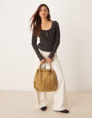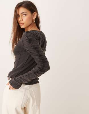 - Ruched sleeves