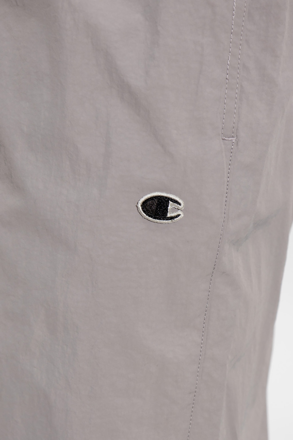 Grey trousers from Champion. Emblazoned with a logo patch, this pair is cinched with drawcords at the waist and features two slip pockets and ribbed cuffs.