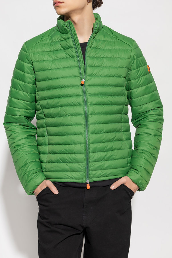 Green ‘Alex’ quilted jacket with a standing collar from Save The Duck. Fastened with a two-way zipper, this style features two front zip pockets, a light green lining and long sleeves – one has a rubber logo patch. It\'s made with high-density 100% nylon fabric which guarantees weightlessness and fluffiness. It is thin yet resistant, thanks to its features it guarantees water repellency and wind protection, it absorbs humidity and dries rapidly.