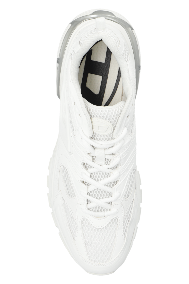 White ‘S-SERENDIPITY PRO’ sneakers from Diesel. Made from fabric and mesh, this lace-up model sits on a white rubber sole and showcases a logo application.