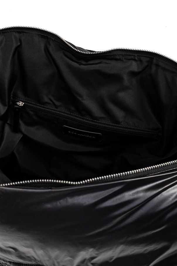 Introducing the Dsquared2 Shoulder Bag with Logo, a paragon of sophistication and utility from the esteemed Dsquared2 brand. This luxurious bag, a testament to both style and practicality, is part of the exclusive apparel collection. The bag boasts a large, rectangular shape with elegantly rounded edges, exuding an aura of spaciousness. Crafted from a smooth, glossy material reminiscent of premium nylon, it offers a plush appearance while being water-resistant. The dominant black hue adds a touch of timeless elegance, making it a versatile accessory for any wardrobe. Adorning the front is the embossed designer logo, seamlessly integrated into the bag\'s design. The bag is equipped with a sturdy, adjustable shoulder strap, fashioned from the same high-quality material, complete with decorative elements for enhanced comfort and aesthetic appeal. The interior is lined with a sleek black fabric, featuring a secure zippered pocket for added functionality. The dual zip closure ensures the safety of your belongings, while the metal zippers provide a durable and stylish touch. Why Choose This Product? Exquisite design by renowned fashion house Dsquared2. High-quality, water-resistant material. Spacious and functional with multiple compartments. Elegant black color suitable for any occasion. Sturdy, adjustable strap for comfort and versatility.