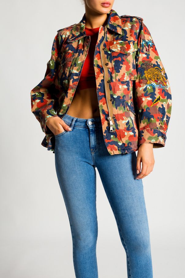 Multicolored jacket from Diesel. Made of cotton. Fastened with a zip and snaps, this pair features a camo pattern, epaulettes on the shoulders, drawstring waist and hem, four snap-fastened flap pockets on the front and one at the back as well as long sleeves embroidered with a multicolored pattern.