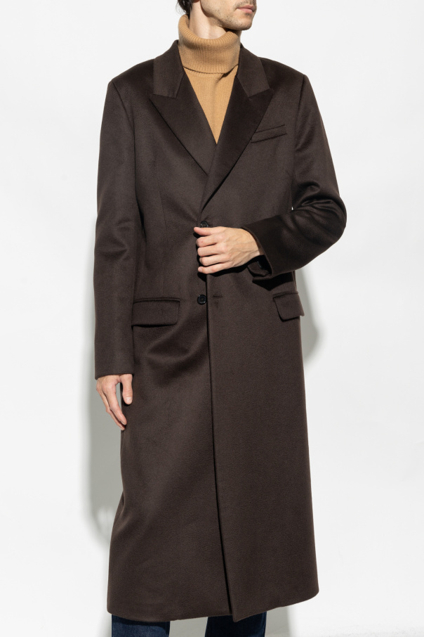 Brown coat from Loewe. Made from cashmere, this style fastens with buttons and features a single back vent, peak lapels, two flapped pockets and long sleeves with button cuffs.