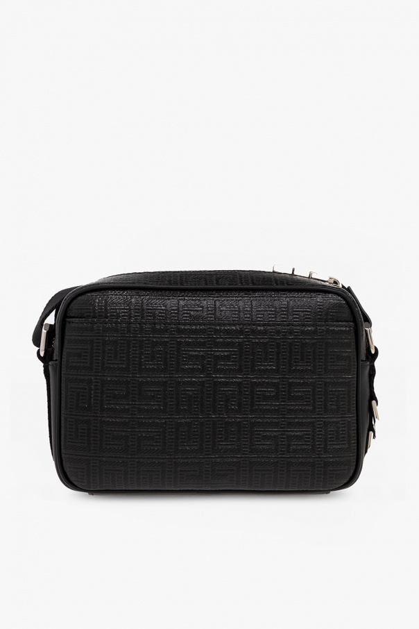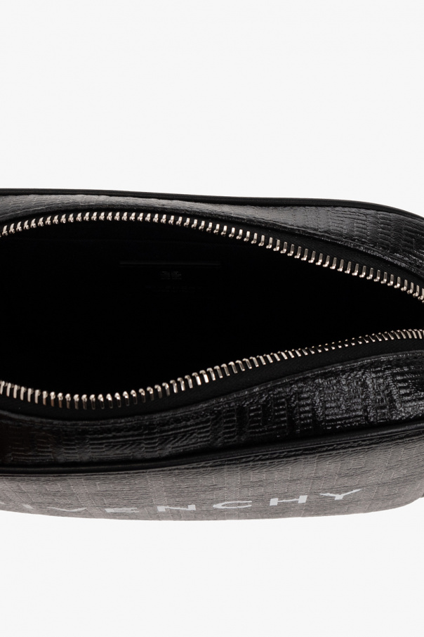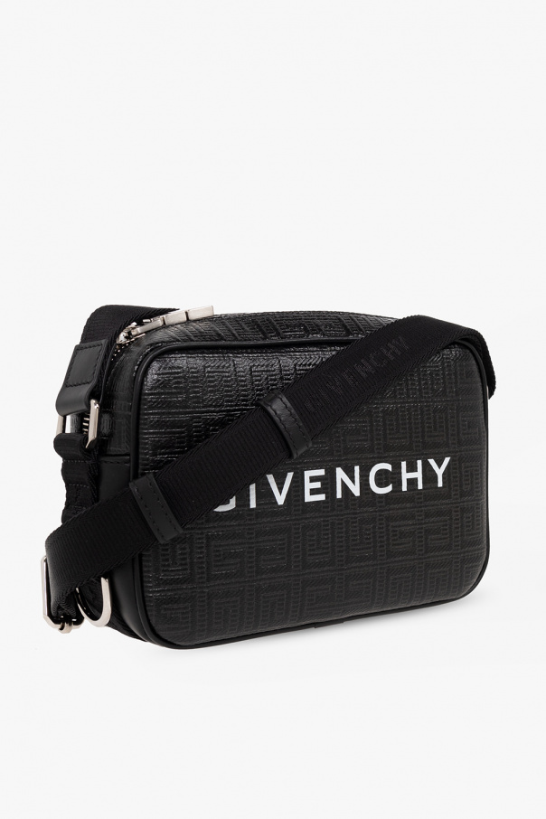 Black ‘G-Essentials’ shoulder bag from Givenchy. Crafted from monogrammed canvas and decorated with a printed white logo, this design features a zip fastening, a back slip pocket, an adjustable strap, silver-tone metal hardware and one internal compartment with a card slot.