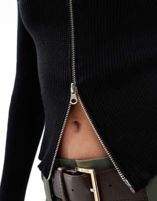 Brave Soul ribbed knitted zip front jumper in black