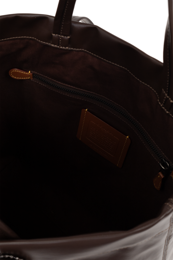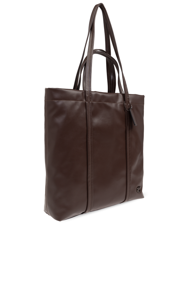 Introducing the Hall Shopper by Coach, a testament to the fusion of functionality and refined aesthetics. Crafted from 100% genuine leather in a rich, dark brown hue, this shopper bag boasts a sleek, vertical silhouette enhanced by symmetrical seams that lend a subtle structure. Its smooth texture and minimalist design are complemented by a discreet logo, a hallmark of exclusivity. The Hall Shopper features long, flat handles, ensuring comfortable shoulder wear. The interior, lined with a premium material, includes a zippered pocket adorned with the brand\'s name, reflecting an attention to detail and practicality. An external leather charm bearing the Coach name adds a touch of brand identity, elevating the bag’s exclusivity. Why Purchase This Product? Elegance meets practicality in a design ideal for the modern individual. Constructed from high-quality genuine leather, promising durability. Designed with an internal zippered pocket for secure storage. Features subtle, exclusive branding elements for a touch of luxury.